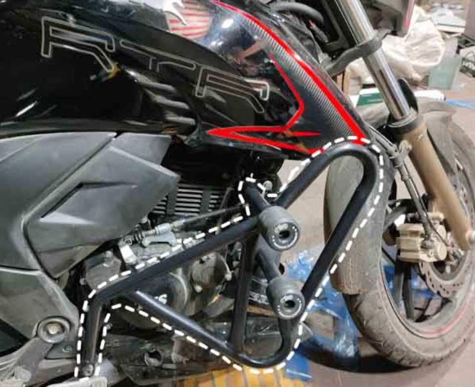 Protect your bike from Crash with the help of this super premium Crash Guard for Apache RTR 160/200 with Double Sliders. To absorb shock and protect the frame from damage in the event of an accident. Designed for superior durability, it ensures your bike is safe from even the most intense rides Time to protect your vehicle from Crash. This crash guard is especially made for APACHE RTR 160/200 4V that lowers the force of the impact during an accident or crash. This Crash guard is designed and built after complete R&D by our team. This Product is sporty design and add aesthetic touch to your Ride Soul.
