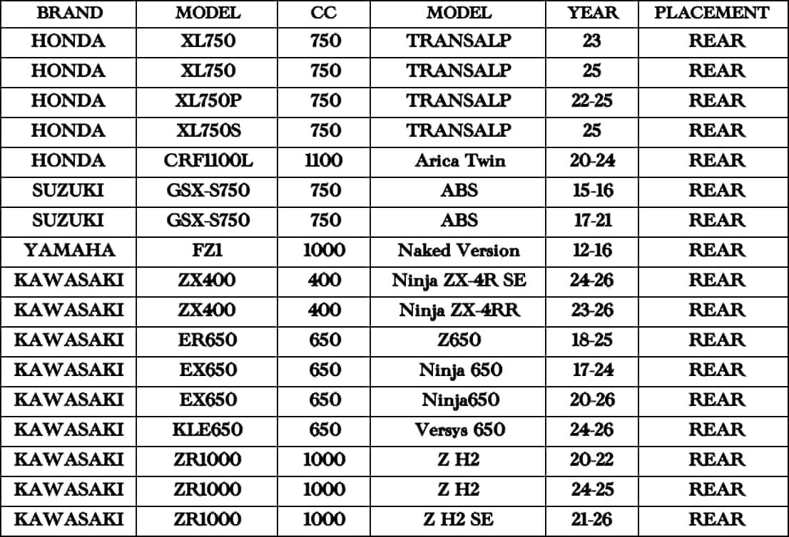 Brand Model CC Year Front Rear