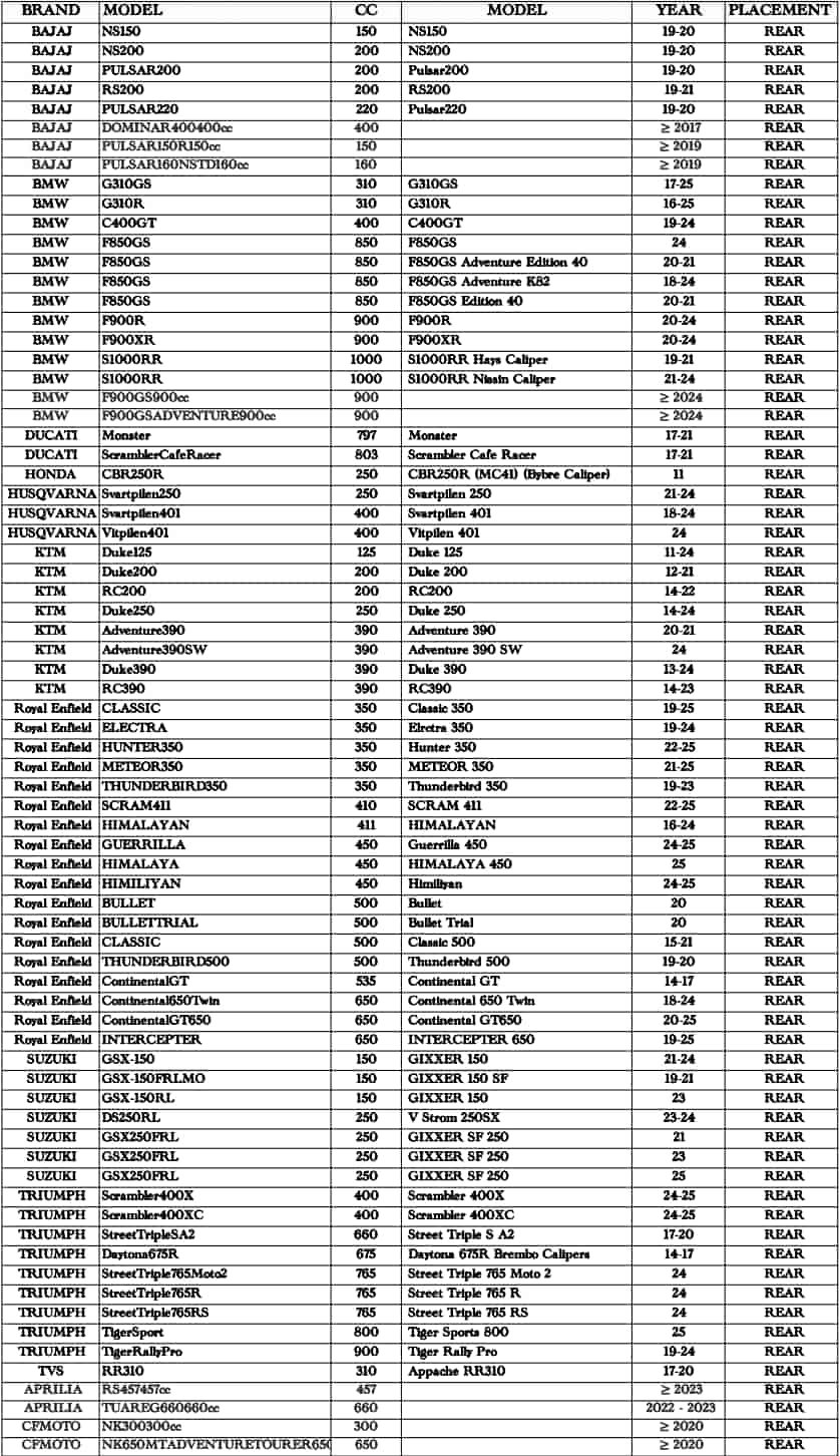 Compatible with the following models