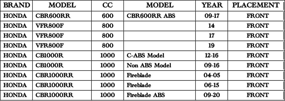 Brand Model CC Year Front Rear