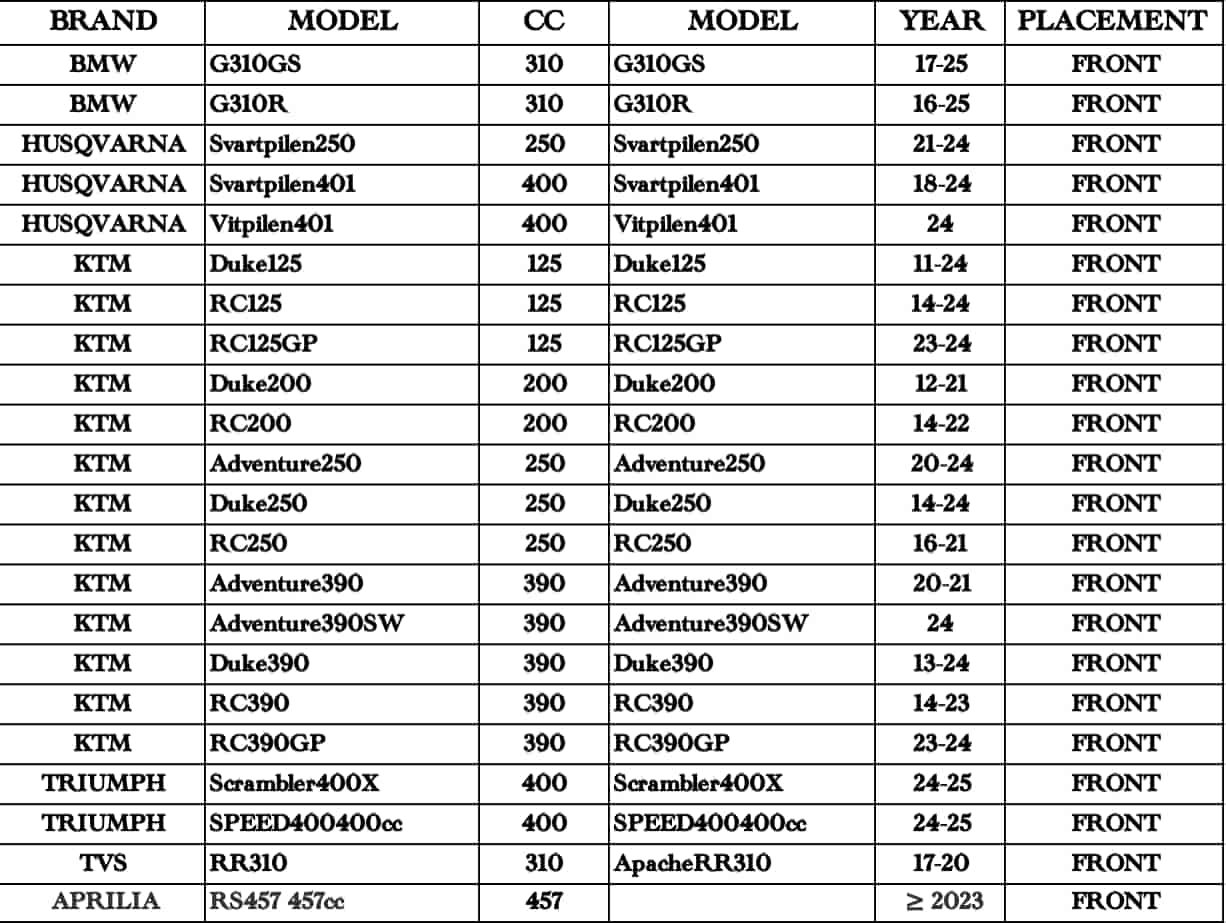 Brand Model CC Year Front Rear