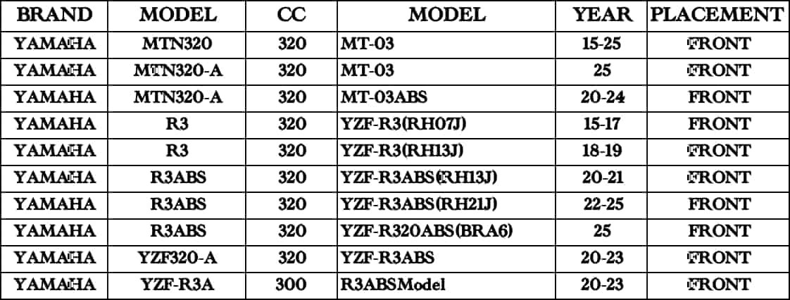 Brand Model CC Year Front Rear