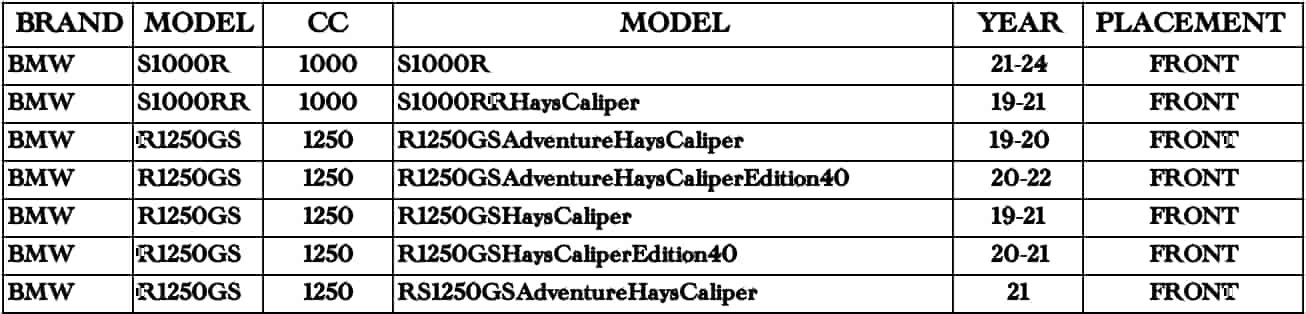 Brand Model CC Year Front Rear