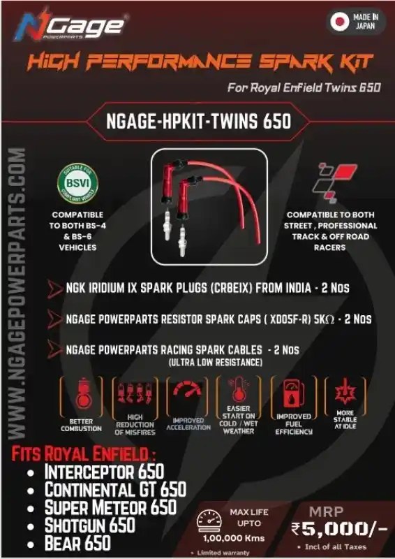 N-Gage Powerparts Spark Plug Kit for Royal Enfield Interceptor 650 / GT 650 / Super Meteor 650 – N-Gage Powerparts