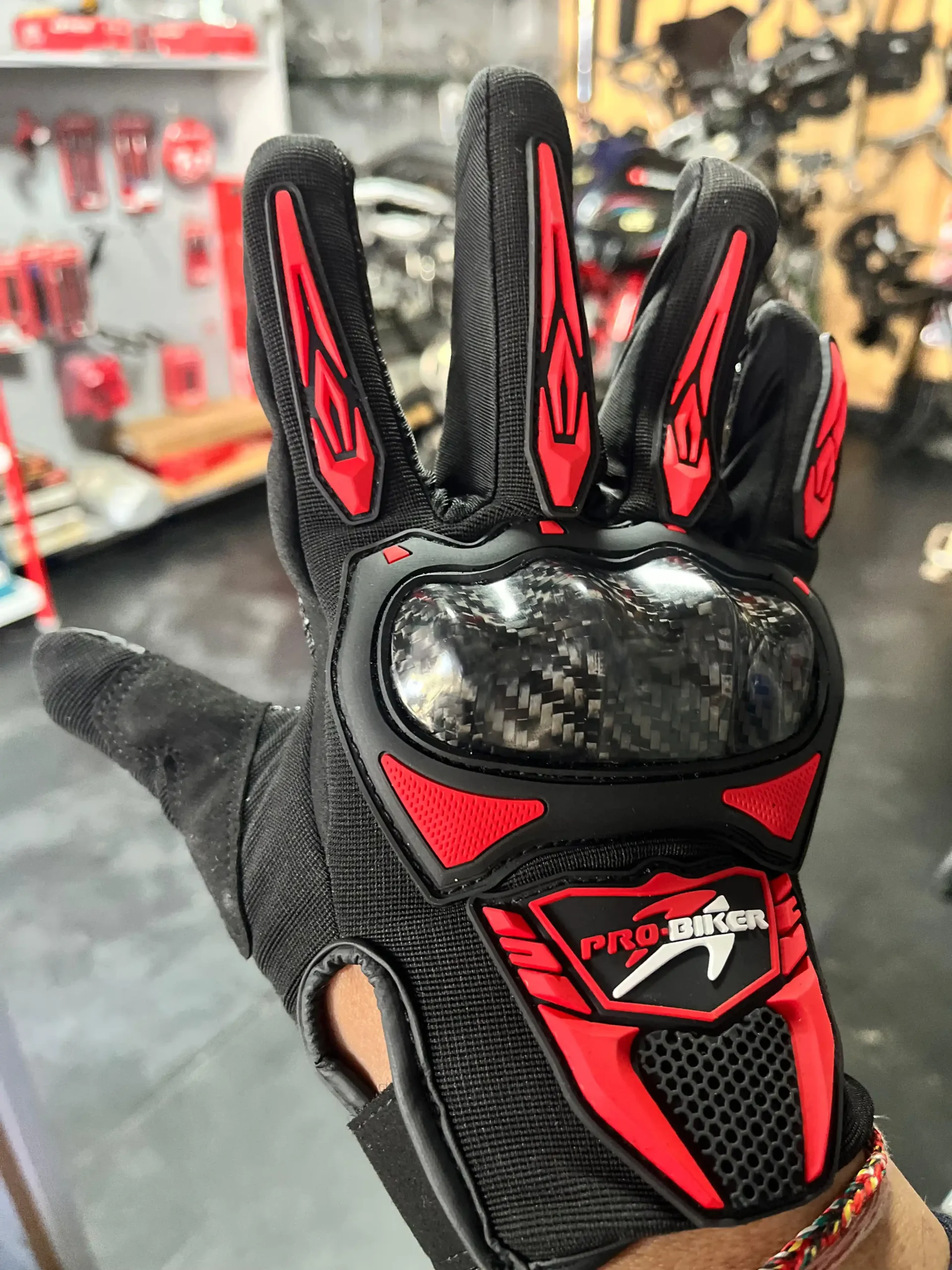 Pro Biker Riding Gloves – Carbon Look Knuckle Protection