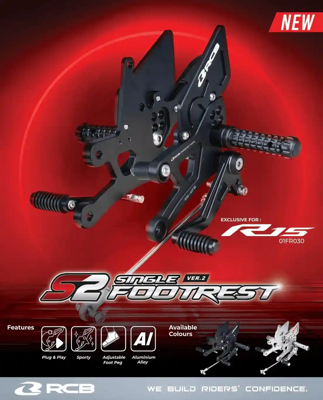 RB FOOTREST SINGLE SET S2-V2 R15-V3 R15-V4 R15V3 R15V4 R15M MT15 01FR040 (SILVER 01FR040S)
